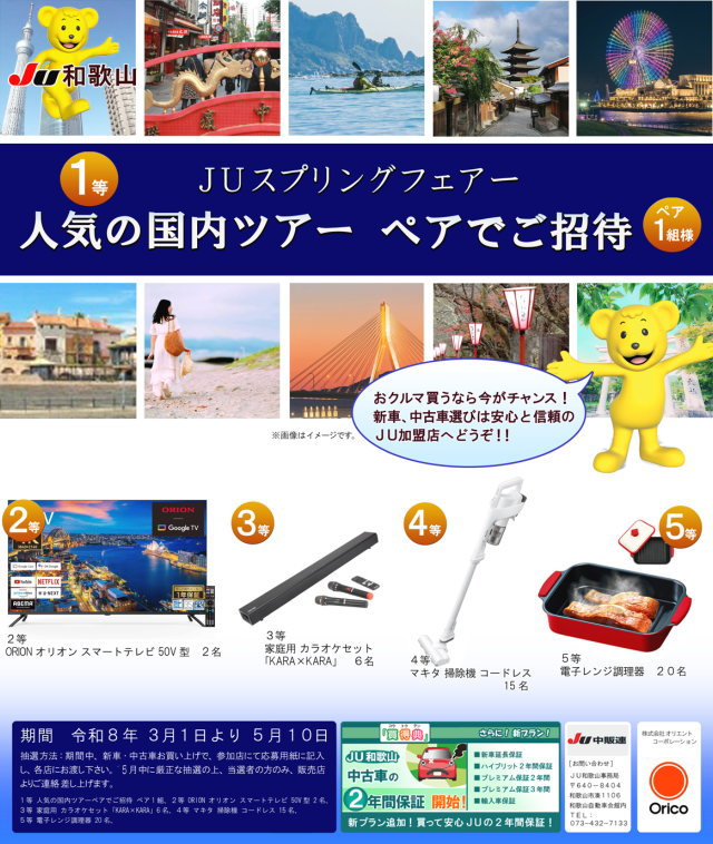 期間中 キャンペーン参加店で 新車、中古車をお買い上げ頂いた方は 応募用紙に記入し、各販売店にお渡しください。5月中に厳選な抽選の上、当選者の方のみ販売店よりご連絡差し上げます。